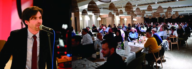 Zvečer smo strokovne in druge zanimive razprave nadaljevali ob svečani večerji in živo glasbo. Udeležba na večerji je bila letos rekordna, saj se večerje udeležilo 215 udeležencev zborovanja. Ob večerji nas je s svojo originalnostjo in tematsko obarvanim nastopom do solz nasmejal skriti gost in vsestranski umetnik g. Tilen Artač (slika 4), v nadaljevanju večera pa je za čudovito vzdušje poskrbela glasbena skupina Chizz Band.